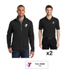 This bundle includes 1 nametag, 2 black silk-touch polos, and 1 half zip sweater.